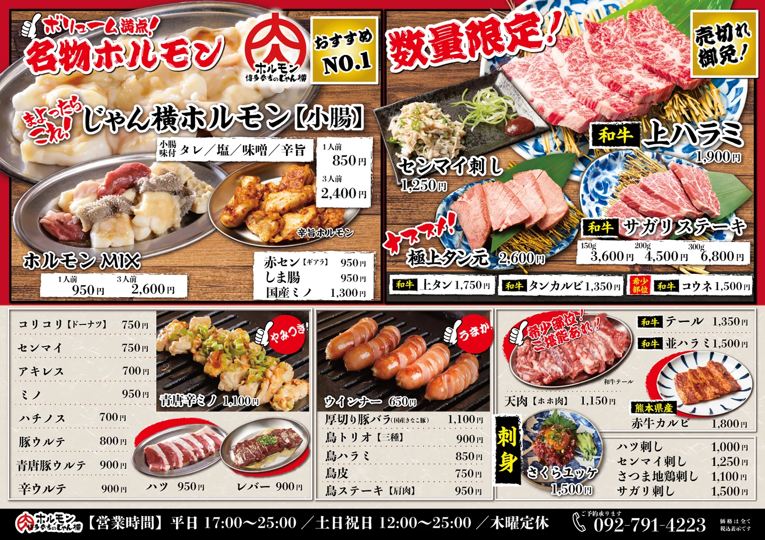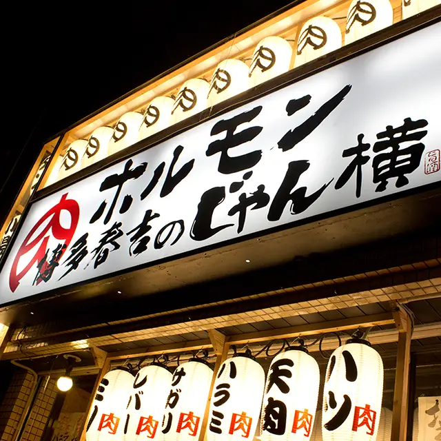 ホルモン博多春吉のじゃん横は、「うまくて!安くて!酔える!」をモットーに、本場熊本から直送で仕入れる新鮮な和牛ホルモンを、お得な値段でご提供しております。焼肉激戦区の博多春吉隅でも、じゃん横は安さでも旨さでも負けません!厳選されたお肉とお酒、そして豊富なサイドメニューで、お客様をおもてなしいたします。