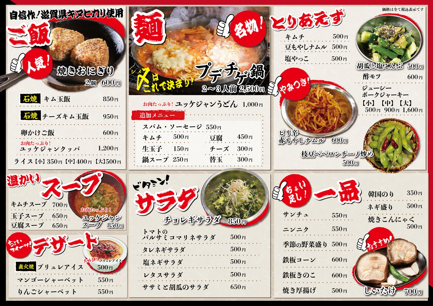 半紙に書かれたメニューが印象的な店内は、活気があり明るい雰囲気。昭和レトロな内装で、親しみやすい店構えです。